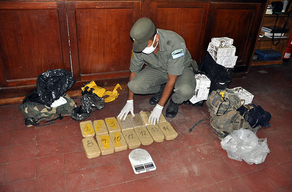GENDARMERÍA NACIONAL INCAUTÓ 14 KILOS 276 GRAMOS DE COCAÍNA TRANSPORTADOS DENTRO DE UNA MOCHILA Y DETUVO A DOS HOMBRES QUE CAMINABAN EN INMEDIACIONES AL PARAJE SALTEÑO DE RÍO PESCADO. ESTE PROCEDIMIENTO SE ENMARCA EN DIRECTIVAS DISPUESTAS POR EL MINISTERIO DE SEGURIDAD CONTRA EL DELITO ORGANIZADO Y TRÁFICO DE DROGAS.